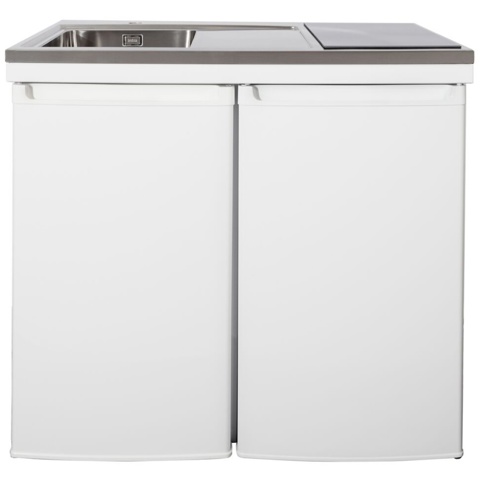 Mangler du et fuldudstyret minikøkken til f.eks. kollegieværelset, kolonihaven eller sommerhuset? Så er denne model fra Intra Juvel et rigtigt godt valg. Minikøkkenet er lavet i et moderne og praktisk skandinavisk design, der passer ind i de fleste hjem. Der er en stor køkkenvask på 340 x 380 x 160 mm indbygget, hvor du kan forberede maden og tage opvasken. Samlet måler minikøkkenet H: 900 mm x B: 1000 x D: 610 mm.