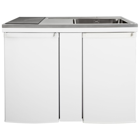 Mangler du et fuldtudstyret minikøkken til f.eks. kollegieværelset, kolonihaven eller sommerhuset? Så er denne model fra Intra Juvel et rigtigt godt valg. Minikøkkenet er lavet i et moderne og praktisk skandinavisk design, der passer ind i de fleste hjem. Der er en stor køkkenvask på 520 x 380 x 180 mm indbygget, hvor du kan forberede maden og tage opvasken. Samlet måler minikøkkenet H: 900 mm x B: 1200 mm x D: 610 mm.