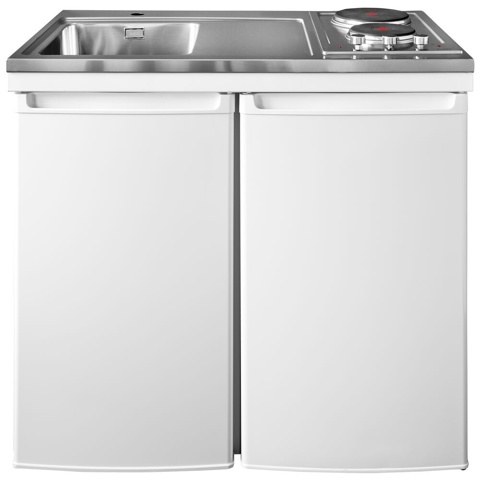 Mangler du et minikøkken til f.eks. kollegieværelset, kolonihaven eller sommerhuset? Så er denne model fra Intra Juvel et rigtigt godt valg. Minikøkkenet er lavet i et moderne og praktisk skandinavisk design, der passer ind i de fleste hjem. Der er en stor køkkenvask på 340 x 380 x 160 mm indbygget, hvor du kan forberede maden og tage opvasken. Samlet måler minikøkkenet H: 900 mm x B: 1000 mm x D: 610 mm.