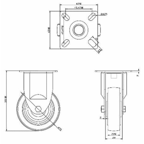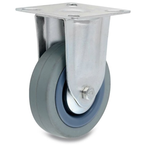Pladen måler 65 x 65 mm og er fremstillet af elforzinket stål, hvilket gør den egnet til indendørs/beskyttet brug. Selve hjulet har en diameter på 75 mm og består af grå polyuretan. Den samlede højde er 103 mm. Oprethold hjulets holdbare og slidstærke evner med regelmæssig vedligeholdelse såsom smøring af aksler og drejelige lejer. Undgå ætsende eller slibende rengøringsmidler. Pakken indeholder 1 stk. containerhjul.