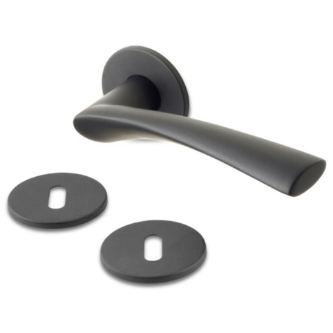 Dørhåndtag med flot svunget form i mat sort stål – Saturn Noir