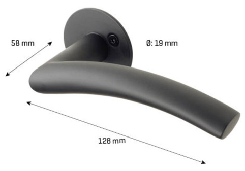 Du behøver ikke lede længere – du har her et klassisk sort dørgreb fra Jasa til dine ind- og udvendige døre. Modellen Sirius har et flot opadbuet greb og 2 mm tykke massive rosetter med en diameter på 52 mm. Dørhåndtaget er 128 mm bredt.