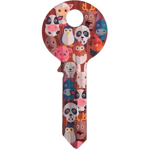 Vil du have søde dyr på din nøgle? Her får du en nøgle fuld af søde og sjove dyr fra Jasa. Nøglen er rød med masser af almindelige hus- og bondegårdsdyr og med et par enkle eksotiske dyr, der har sneget sig ind iblandt de andre. Nøglen er lavet i messing, der gør den holdbar og modstandsdygtig overfor korrosion. Motivet kan hjælpe dig og familien med bedre at kende forskel på jeres nøgler. 5-stiftsnøglen passer til 5-stiftede låsecylindere.