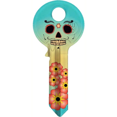 Få en festlig og farverig ny nøgle med mexicansk inspireret motiv. På den måde bliver det let for dig og dine familiemedlemmer at kende forskel på jeres forskellige nøgler, om det er hver jeres, eller det er til forskellige formål. Hvis din gamle nøgle er slidt, eller du bare gerne vil have en ny, sjov nøgle kan du her finde en 5-stiftsnøgle lavet i messing. 5-stiftsnøgler passer til 5-stiftede låsecylindere.