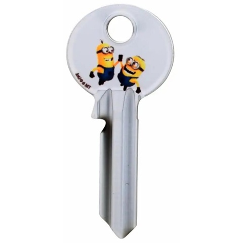 Vil du gerne have en fin nøgle med motiv i nøglebundtet, så den er let at finde? Her kan du få kvalitetsnøgle fra Jasa, der samtidig har et sødt og sjovt motiv med Minions, der giver en high-five. Nøglen er en holdbar, slidstærk 5-stiftsnøgle i messing, og den passer til 5-stiftede låsecylindre.