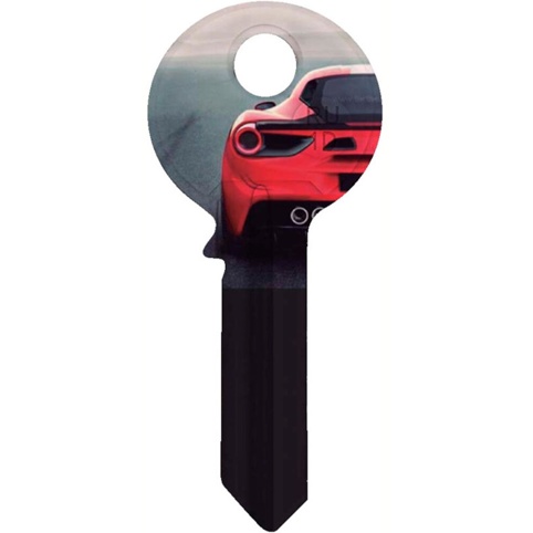 Mangler du en ny nøgle eller ekstranøgle med et sejt print? Denne 5-stiftsnøgle er udført i messing og har et sportsbilsmotiv i rød og sort. Den 5-stiftede nøgle med rundt hoved passer til 5-stiftede låsecylindere.