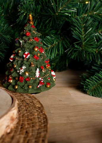 Sæt gang i det gode julehumør ved at pynte op til jul. Pryd hjemmet med dette grønne juletræ med pynt, som vil passe ind med den øvrige julepynt. Juletræet kan endvidere spille musik, og melodien er ”We Wish You a Merry Christmas”. Tænd for træets musik, når stemning skal piftes op, men den kan sagtens også stå til pynt og sprede julestemning. Træet måler H: 15 cm.