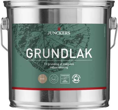 Grundlakken fra Junckers vil forsegle og give en jævn overflade inden videre behandling. Grundlakken er til grunding inden lakering af indendørs trægulve, både ubehandlede og maskinslebne. Her vil den minimere risikoen for limeffekt samt sidebinding imellem de enkelte gulvbrædder. Grunderen er vandbaseret, hurtigtørrende og Indeklimamærket.