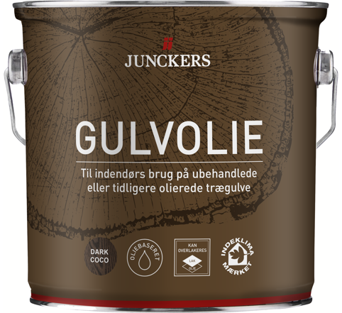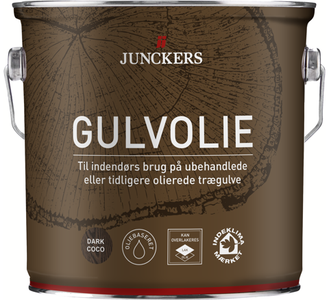 <h2>Beskyt trægulvet med Junckers’ gulvolie</h2><p>Gulvolien fra Junckers vil beskytte træet mod snavs og slid samt give det glød og dybde. Olien er til grunding og færdigoliering af indendørs trægulve, både ubehandlede, tidligere olierede og maskinslebne. Den er Indeklimamærket og kan overlakeres. OBS: Farveudtrykket på en træoverflade kan, afhængig af træsort, variere fra de viste fotos. Udfør altid en test før oliering af hele overfladen.<br><br>Til at påføre gulvolien kan du bruge en klud, pensel, rulle eller polermaskine med en hvid nylonrondel. Efter brug rengøres værktøjet med mineralsk terpentin. Olien er klar til færdigbehandling efter 16-24 timer, og 24 timer efter færdigbehandlingen er gulvet klar til brug. Tæpper og andet tildækning bør du dog først lægge på gulvet, når olien er fuldt hærdet 72 timer efter.</p>