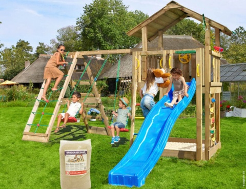 Legetårnet forhandles som gør-det-selv-projekt, så du får brug for at finde værktøjskassen frem for at sammensætte det i haven – invitér evt. en god ven forbi for at hjælpe med sammensætningen. Ved levering medfølger alle nødvendige dele (inkl. sandpose på 120 kg), så du hurtigt kan gå i gang. De trykimprægnerede brædder er vejrbestandige og beskyttet mod råd og insekt- og svampeangreb. Behandler du tårnet med træbeskyttelse hvert halve år, vil det forlænge holdbarheden. Træet er PEFC-certificeret.