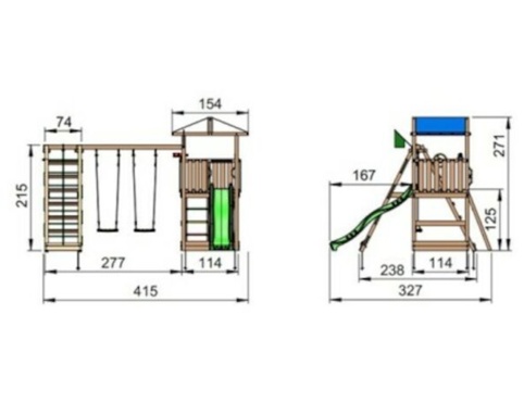 Lad dine børn afprøve deres evner på det fine klatremodul. Dine børn bliver motiveret til at klatre, som kan hjælpe dem med at udvikle deres motoriske færdigheder. De små kan også gynge i takt eller om kap på legearealets to gynger. Dette tårn med kikkert kan indarbejdes i fantasi-leg som sømænd eller pirater, så dine børn kan lege at de holder udkig efter fjender på det åbne hav. Projektets sandkasse giver masser af mulighed for at lave sandslotte og sandskulpturer, som kan udfordre dit barns kreativitet.