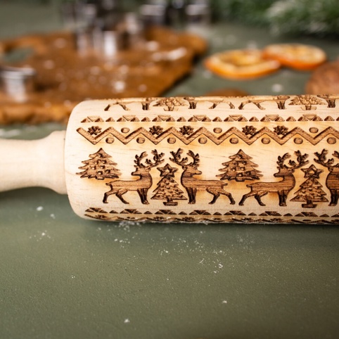 Det er svært at forestille sig en jul uden julebagning. Med denne flotte kagerulle kan du bage lækre kager og småkager – en aktivitet der emmer af hygge, og som med garanti vil sætte julestemningen i gang. Kagerullen er nemlig udsmykket med forskellige julemønstre: grankogler, gaver, rensdyr og juletræer. Kagerullen er fremstillet i slidstærkt gummitræ og vejer 250 g.