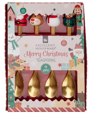 Her finder du en pakke med enten teskeer eller gafler, som du og familien kan bruge i hele december måned. Sættet er fremstillet af rustfrit stål med guld belægning – derfor tåler de ikke opvaskemaskine. Pakken er også perfekt som pakkelegsgaver. Denne vare er assorteret, og du kan ikke vælge design eller type online.
