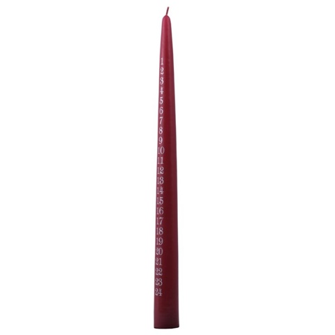 Den slanke, koniske form og tallene fra 1 til 24 gør det nemt at tælle ned til juleaften – én dag ad gangen. Lyset har en smuk farve, der emmer af jul og hygge, og det passer perfekt på spisebordet, i vindueskarmen eller som en del af årets adventsdekoration. Tænd lyset hver dag og lad flammen skabe ro og nærvær midt i juleræset. Et klassisk og stemningsfuldt indslag, der gør ventetiden til noget helt særligt.