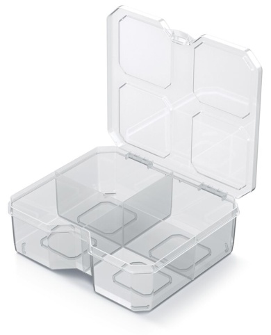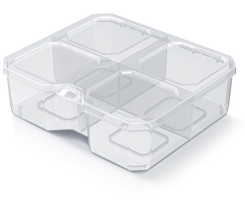 Transparent opbevaringsboks med 4 faste rum