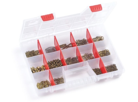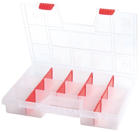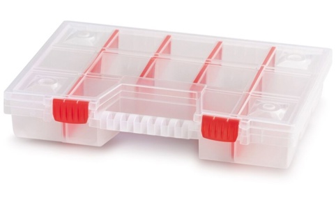 Transparent sortimentskasse med 10 flytbare rumdelere