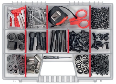 Med denne sortimentskasse kan du nemt holde styr på små dele til hobby-projekter, f.eks. søm og skruer, plugs, perler, smykkedele og meget mere. Sortimentskassen måler B: 390 mm x D: 290 mm x H: 65 mm. Både kassen og låget er fremstillet i transparent polypropylen, så du hurtigt kan se, hvad der gemmer sig i den. Der medfølger 10 flytbare rumdelere, så du kan justere størrelsen og antallet af rum, så det kommer til at passe til dine behov.