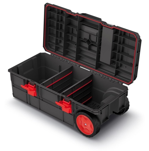 Hvis du har meget værktøj i en værktøjskasse, kan den hurtigt blive tung og derfor svær at transportere rundt. Dette problem kan du løse med denne værktøjskuffert, da den har hjul, hvilket gør det nemt at transportere værktøjet rundt. Samtidig har den 2 håndtag, så du enten kan vælge at bære den rundt eller trække den med hjulene.
