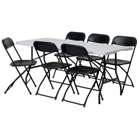 Med dette foldbare klapbord i hvid får du en ideel løsning, når du har brug for ekstra bordplads til festlige lejligheder, arbejdsprojekter eller udendørs arrangementer. Med en bordplade på L: 180 cm og B: 70 cm giver det plads til op til seks personer. Den maksimale belastning på bordet er 150 kg. Når bordet ikke er i brug, kan det nemt foldes sammen og opbevares kompakt.