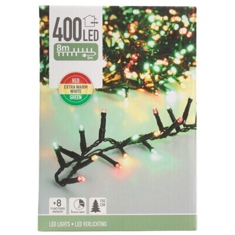 Klyngelyskæde med klassiske julefarver som ekstra hvid, rød og grøn