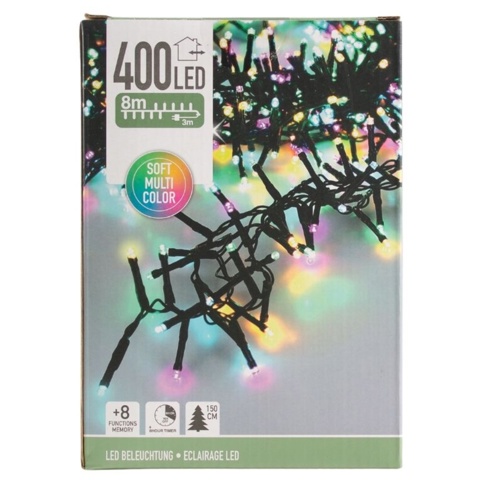 Skab en magisk julestemning både med denne lyskæde, med LED-lys i grøn, orange, blå og pink, som gør den spreder et varmt, festligt skær og bringer glæde i den mørke vintertid. De små 5 mm pærer sidder tæt med 2 cm afstand og 3 cm grene, hvilket giver en fyldig og ensartet lysoplevelse. Perfekt til juletræet, altanen, vindueskarmen eller som hyggelig dekoration langs huset. Lad julens farver lyse op og sprede smil hele december.