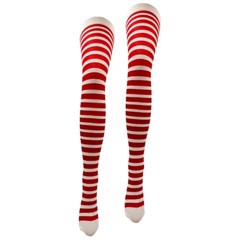 Sæt gang i julestemningen fra top til tå med disse festlige strømper i klassisk alfestil – de lange strømper har et charmerende rødt og hvidt stribemønster, der straks leder tankerne hen på julens magi, slikstokke og nissedrillerier. De er perfekte til julefrokoster, temafester eller som en sjov detalje til dit julekostume. Materialet er blødt og strækbart, så strømperne sidder behageligt hele dagen.