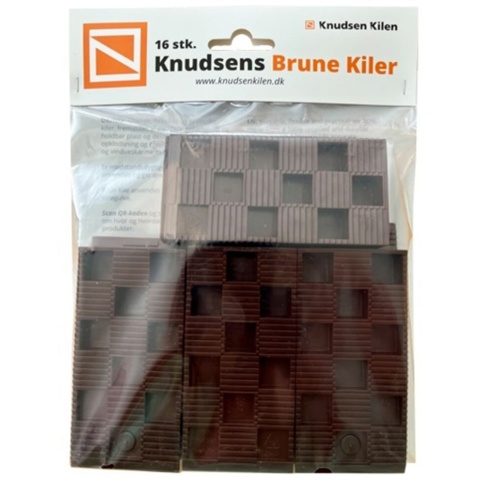 Disse kiler i brun har skarpe, forskudte savtakker, som giver en skridsikker opklodsning – også sideværts. Du kan bruge disse kiler til opklodsning af strøgulve og tungere genstande, som behøver et stabilt underlag. Kilerne kan nemlig bære 600-1700 kg afhængig af kilernes indbyrdes overlap. De flækker ikke ved gennemboring af søm eller skruer. Pakken indeholder i alt 16 stk. kiler pr. pakke, og hver kile måler T: 15 mm x B: 45 mm x L: 90 mm.