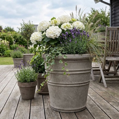 Når man gerne vil pynte op i huset eller på terrassen med flotte planter og blomster, så vil en krukke sætte den sidste prik over i’et. Derfor kan du finde dem i et hav af farver, former og designs – denne krukke har en flot neutral grålig farve, som derfor passer til alle planter og blomster. Og størrelsen på den gør, at den er perfekt til de store sorter.