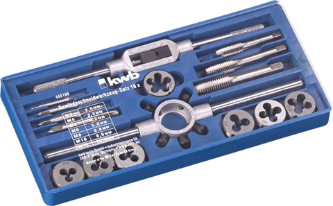 Dette sæt med gevindskærer fra KWB er ideelt til værksteds- og gør-det-selv-opgaver. Det indeholder 16 dele til at skære gevind i forskellige størrelser. Du får størrelserne M3, M4, M5, M6, M8, M10 og M12. Hele sættet leveres i en praktisk opbevaringskasse, så alle dele er organiseret.