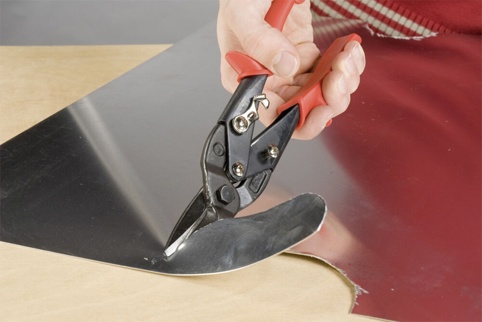 Denne pladesaks har venstreskær. Den kan bruges til brede kurver og korte, lige snit. Pladesaksen kan klippe i metalplader op til 1,5 mm og rustfri plader op til 1,0 mm.