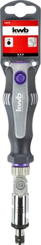 Skraldefunktionen har 3 indstillinger: venstreløb, højreløb og lås, så du nemt kan tilpasse arbejdet til opgaven. Skruetrækkeren kan låses i vinklerne 0°, 45° og 90°, hvilket giver stor fleksibilitet og gør det muligt at skrue effektivt, selv på svært tilgængelige områder. Den indbyggede 1/4" sekskantfatning passer til alle standardbits. Der medfølger desuden en holder, der kan skrues på væggen for nem og praktisk opbevaring af skruetrækkeren.