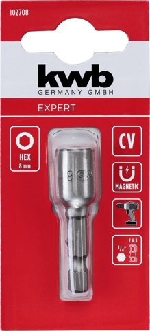 Med en topnøgle til boremaskine kan du hurtigt og nemt skrue alle mulige skruer med sekskantet hoved. Vælg blot den størrelse topnøgle, der passer til emnet. Denne topnøgle fra KWB i professionel kvalitet er lavet i CRV-stål, og den er med hexagon-bitsskaft på 1/4". Den passer i skruetrækkere, boremaskiner, bitholdere, manuelle slagboremaskiner m.m. og holder på skruen med indbygget magnet.