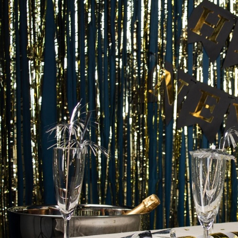 Med dette dekorative lamettagardin – der også kaldes glimmergardin eller dørgardin – kan du pynte op og skabe en festlig stemning til din næste fest. Du kan f.eks. bruge lamettagardinet som dørforhæng eller som baggrund til en fotobås under nytårsfesten, fødselsdagsfesten, guldbrylluppet, diskofesten eller lignende.