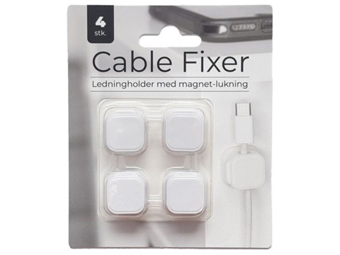 Denne pakke indeholder 4 forskellige holdere, som du kan bruge til at holde diverse opladekabler eller ledninger. Denne Cable Fixer har en magnetisk lukning, som gør du nemt og hurtigt kan fjerne eller tilføje ledningen hertil. Hver holder har dobbeltklæbende tape påsat sig, så du nemt kan sætte holderen fast på bordben, kommode o.l. Du kan bruge ledninger op til maks. Ø: 7 mm.