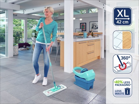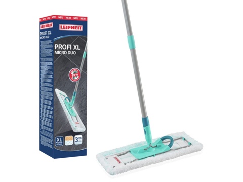 Den medfølgende moppeklud er en universalklud af ekstra høj kvalitet. Kluden er lavet af mikrofiber og fjerner effektivt genstridigt snavs. Den er velegnet til alle gulvtyper, inklusive træ, klinker, vinyl og laminat. Moppekluden er nem og hurtig at fastgøre til fladmoppen, og den kan vaskes ved 60 °C, så du kan bruge den igen og igen. Leifheit yder 3 års garanti på fladmoppen.
