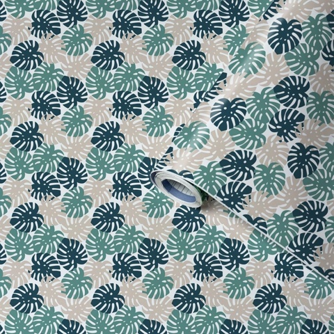 Selvklæbende folie er en smart, sjov og dekorativ måde at tilføje et nyt element til din indretning på. Du kan bruge folien på f.eks. møbler, hylder, overflader og vinduer – og så er folien både nem at sætte på og fjerne igen, hvis du igen har lyst til forandring. Den selvklæbende folie fås her i modellen Tropical, der har et flot mønster af Monstera-blade i grønne, blå og beige nuancer.