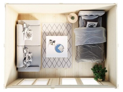 Lillevilla Nilakka er et moderne og alsidigt havehus, som giver dig friheden til at skabe et rum, der passer til din hverdag. Brug det som gæstehus til overnattende familie, et roligt hjemmekontor, et lille atelier eller en hyggelig base til afslapning – indret med møbler, tæpper og nips, så du får en indbydende stemning og sætter dit personlige præg. De store glaspartier i dobbeltdøren og vinduet giver et flot lysindfald, så rummet føles åbent og behageligt at opholde sig i.