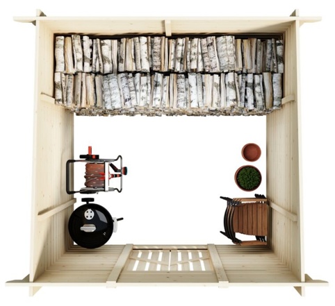 Skuret er ideelt til udendørs opbevaring, så du kan stable og organisere dit brænde tørt og samlet ét sted, uden at det optager plads andre steder. Med 7,3 m² får du god plads til at stable og organisere brænde (og evt. mindre haveredskaber) tørt og samlet, så det er nemt at holde overblik og hurtigt at få fat i, når du skal bruge det. Skuret har dobbeltskydedør, så du får en praktisk adgang – også når der står meget brænde i skuret.