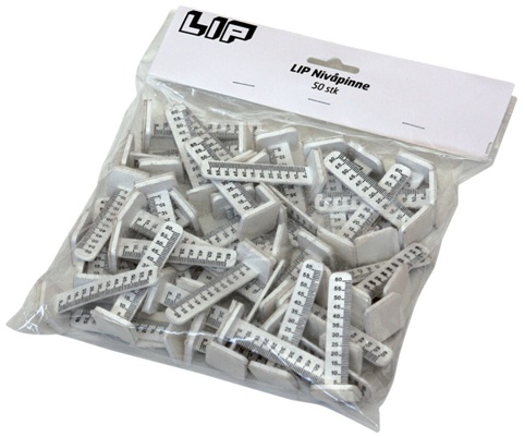 Er du i gang med at spartle gulve? Og mangler du en indikator på, hvor tykt laget skal være, så er disse niveaupinde løsningen. Pakken indeholder 50 stk. niveaupinde fra LIP, der anvendes som målepind til at måle niveau ved spartling af gulve. Hver af niveaupindene måler fra 5 mm og op til 60 mm. Denne type niveaupind har en selvklæbende bund, der gør det nemt at måle tykkelsen af laget det samme sted hver gang, da den sidder fast ved dét udgangspunkt, man startede i.