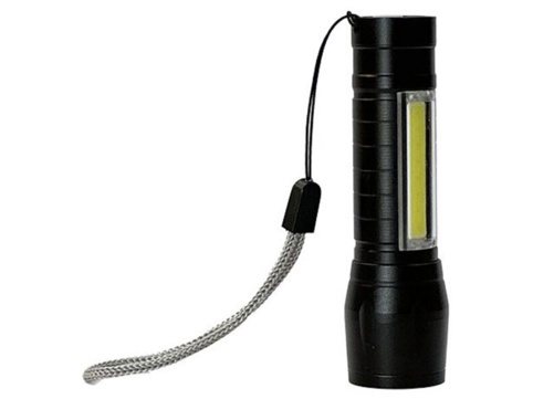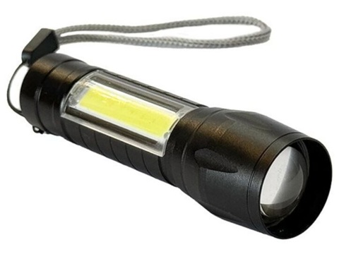 Lommelygte med frontlys med zoomeffekt og sidevendt arbejdslampe