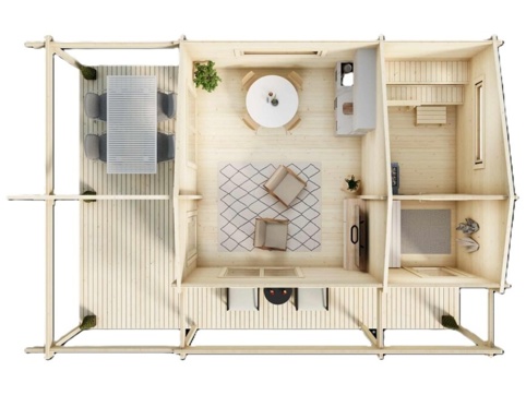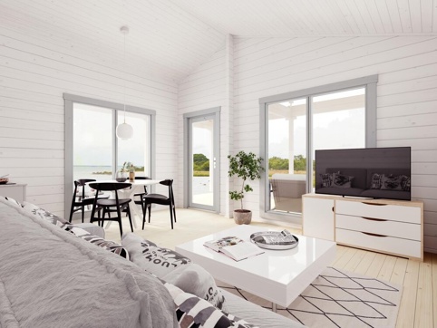 Luoman Merihanhi giver dig et ekstra frirum i haven, hvor du kan sænke tempoet og skabe de dér små stunder, der føles som ferie i hverdagen – huset er også perfekt ved sommerhuset. Træd ind i opholdsrummet, smid tæppet over skuldrene og sæt dig med en kop kaffe – eller brug hytten som et hyggeligt samlingspunkt, når venner og familie kigger forbi. Den store terrasse foran gør det oplagt at lave et lille udeliv med loungestole, spisebord lanterner og varme tæpper, så du kan blive ude lidt længere, også når aftenen falder på.
