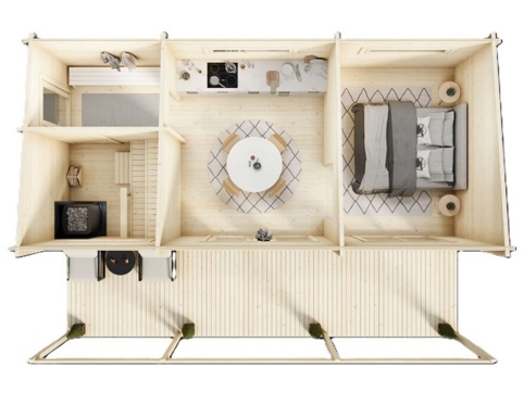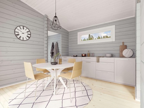Luoman Rantasipi giver dig et ekstra rum i haven eller ved sommerhuset, hvor du og familien kan sænke tempoet og skabe de dér små stunder. Det store rum er perfekt til opholdsrum med spisebord eller som stue med bløde stole eller sofa. Så du kan bruge hytten som et hyggeligt samlingspunkt, når venner og familie kigger forbi. Den store terrasse foran gør det oplagt at lave et lille udeliv med loungestole, spisebord lanterner og varme tæpper, så du kan blive ude lidt længere, også når aftenen falder på.