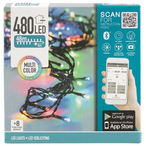 Her finder du en lyskæde, som kan gøre, at du og dine omgivelser kommer i julestemning, og du kan bruge den både inden- og udendørs (IP44). Du får her en lyskæde med LED-lys, som lyser i en flot varm hvid. Du kan indstille timer og lysfunktioner vha. en smart app. Appen hedder ’lights’ og kan downloades ved at scanne QR koden på kassen. Husk, at der skal være strøm til kæden for at kunne scanne QR koden på telefonen. Når du bruger appen til at styre lyskæden, får du mulighed for at tage de mange spændende funktioner i brug.