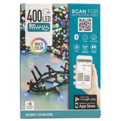 Her finder du en lyskæde, som kan gøre, at du og dine omgivelser kommer i julestemning, og du kan bruge den både inden- og udendørs (IP44). Du får her en lyskæde med LED-lys, som lyser i en flot varm hvid. Du kan indstille timer og lysfunktioner vha. en smart app. Appen hedder ’lights’ og kan downloades ved at scanne QR koden på kassen. Husk, at der skal være strøm til kæden for at kunne scanne QR koden på telefonen. Når du bruger appen til at styre lyskæden, får du mulighed for at tage de mange spændende funktioner i brug.