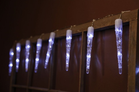 Fin lyskæde med 10 istapper i koldt hvidt lys
