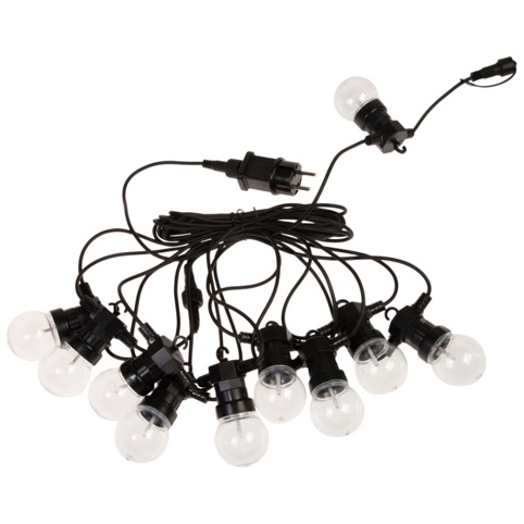 Du får her et startsæt, som både indeholder lyskæde, forlængerledning og en 31V/3,6W adapter til stikkontakt. Vil du have en længere lyskæde, har du mulighed for at forlænge den med op til 2 ekstra forlængerlyskæder. Denne lyskæde kan anvendes både inde- og udendørs. LED-pærerne er fremstillet af kraftigt plastik og kan ikke udskiftes.