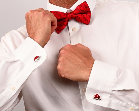 Bring julestemningen ud i ærmerne med manchetknapper formet som nissehue