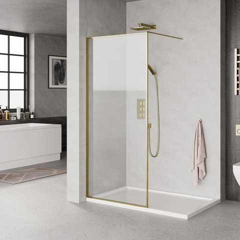 Er du på udkig efter en enkel og klassisk brusevæg, der kan fuldende brusehjørnet på dit badeværelse? Så finder du her en elegant brusevæg fra Mikelo med klart glas og en smuk aluprofil i farven oxideret messing. Brusevæggen er lavet i 6 mm sikkerhedsglas, og der medfølger en forhængsstang i samme bredde som brusevæggen.