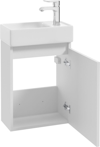 Livorno badmøbel er et kompakt og stilrent møbel, der passer perfekt til mindre badeværelser og gæstetoiletter. Med mål på 39 cm i bredden, 50 cm i højden og 21 cm i dybden udnytter det pladsen optimalt uden at gå på kompromis med funktionalitet. Møblet er fremstillet af lakeret spånplade med en MDF-front og leveres med en elegant porcelænsvask, der fuldender det minimalistiske udtryk. Det fås i sort eller hvid – begge med en mat finish, der giver et moderne og roligt look, som nemt kan kombineres med forskellige indretningsstile.