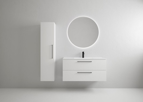 Leder du efter et flot og praktisk underskab, hvor du kan have plads til alt dit badeværelsestilbehør? Så er dette badmøbel i elegant mathvid et rigtigt godt valg. Skabet er inkl. vask, og du kan placere det lige under badeværelsesspejlet.